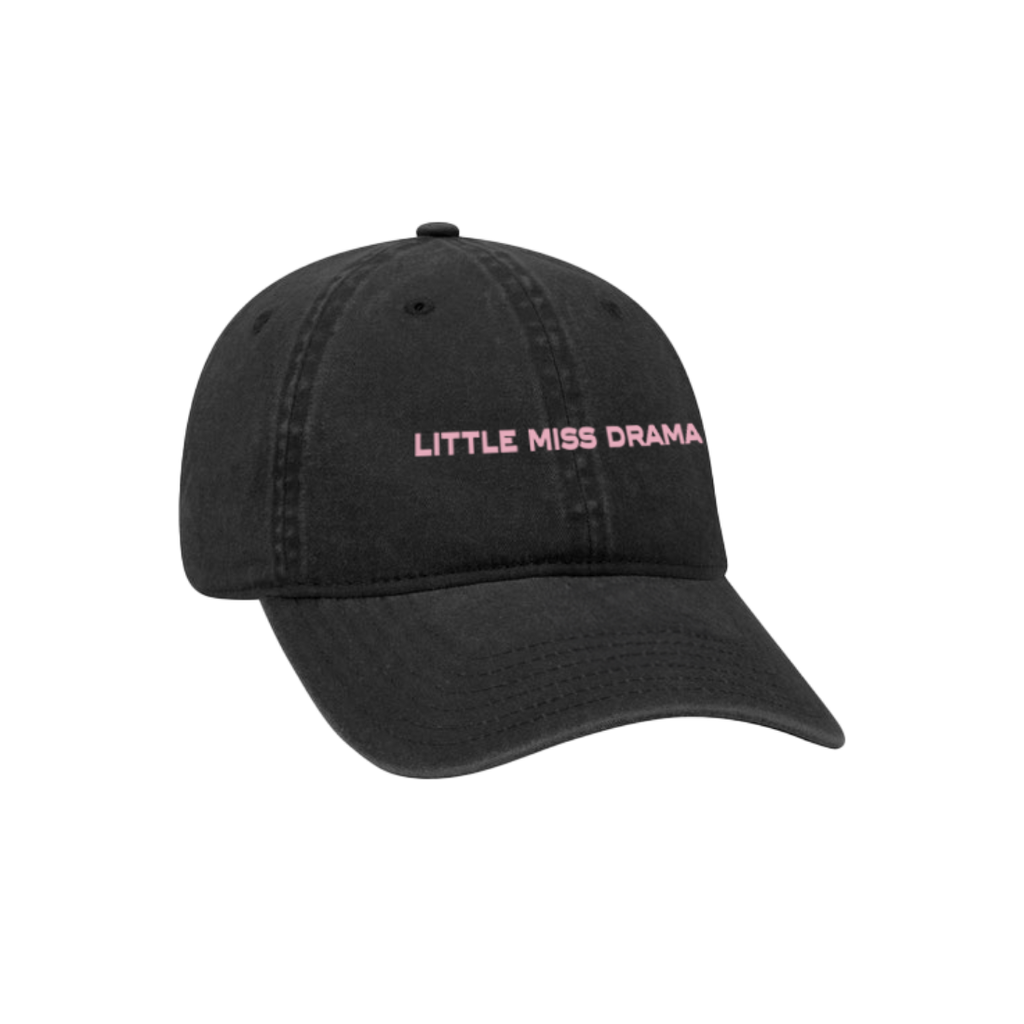 Black hat with "Little Miss Drama" embroidered in pink.